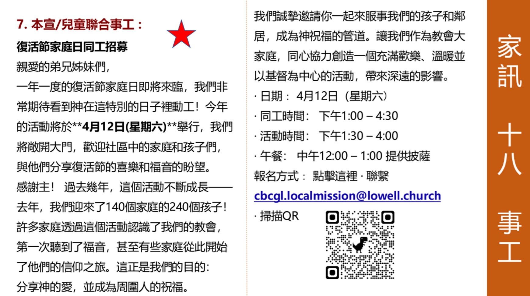 4/12/2025 儿童/本宣联合事工-复活节家庭日